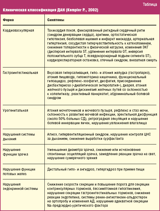Таблица. Клиническая классификация ДАН (Kempler P., 2002)