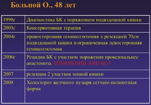 - Существует настоятельная необходимость активного наблюдения больных БК при обнаружении изменений в печени и желчевыводящих путях с целью своевременного комплексного лечения этих поражений.